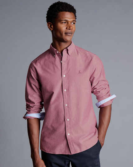 Button-Down Non-Iron Check Shirt-Maron-Red