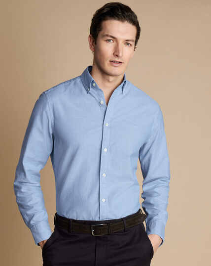 Button-Down Non-Iron Check Shirt-Teal-Green
